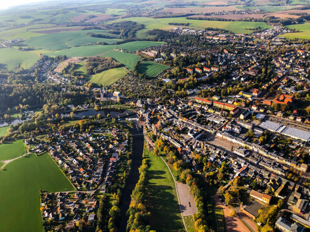 Einige Kilometer danach erreichen wir unseren Wendepunkt, den Zusammenfluss von Zwickauer Mulde und Freiberger Mulde. Zurück geht es dann an Geithain, Kohren-Sahlis und der Burg Gnandstein vorbei zur Landung in Altenburg-Nobitz.