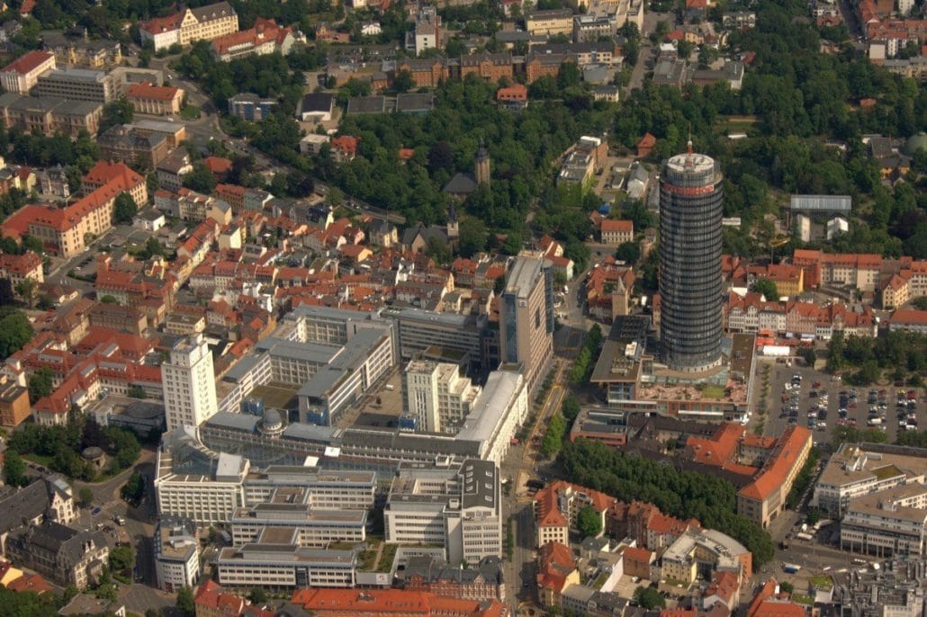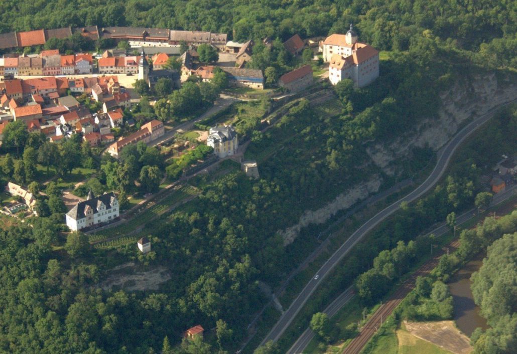Weiter geht es dann entlang der Saale Stromaufwärts. Auf unserer Route liegt als nächstes Jena. Die Universitäts- und Wissenschaftsstadt liegt eingebettet zwischen den Kernbergen. Dem Saaletal folgend erreichen wir nach wenigen Minuten Kahla und die Leuchtenburg. Hier biegen wir direkt ab Richtung Osten und treffen nach kurzer Flugzeit bei Tautendorf auf die A9. Dieser folgen wir nach Norden, wo wir das Hermsdorfer Kreuz überfliegen und über Hermsdorf nach Bad Klosterlausnitz kommen. Nach dem Überfliegen des Gebietes der ehemaligen „Muna“ geht es von Weißenborn wieder direkt Richtung Gera, wo unsere Runde an ihrem Ausgangspunkt wieder endet.