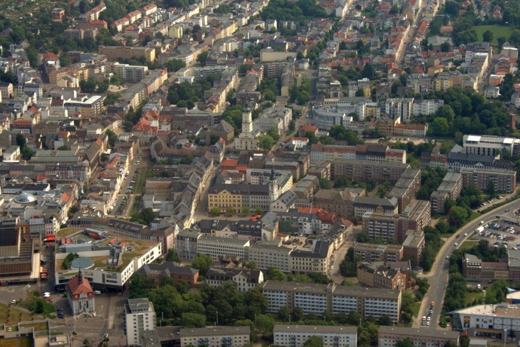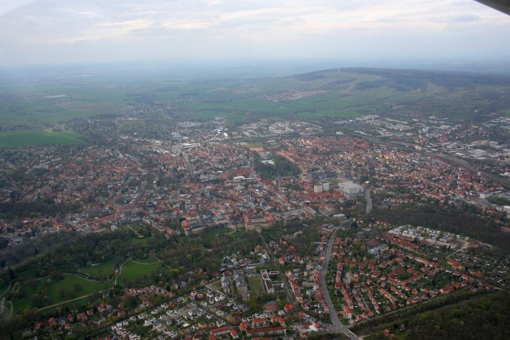 Nach dem Start auf dem Flugplatz Gera sehen wir gleich als erstes die drittgrößte Stadt Thüringens: